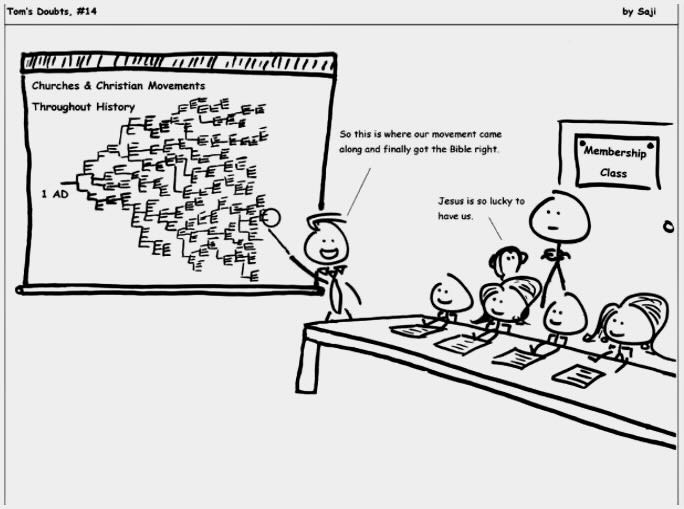 All Protestant denominations are already splits of splits of splits. They’re accommodations—meaningful ones but precarious and provisional. They hold stories and create a manageable scale of togetherness. But they’re not equivalents of the great covenant of God’s grace. All the ins and outs of denominations and Christian subcategories and labels and definitions—all the details we fuss over—are secondary to the great mystery of God, a mystery into which we all long to be received.