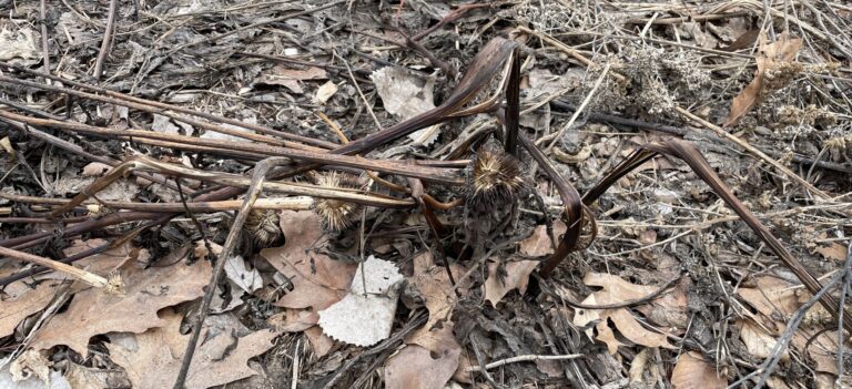 Even I have to admit, it looks terrible: broken, rotting stalks, bare dirt, no happy winged visitors. I tell myself there are over-wintering insects in there, that native roots are strong, that spring is coming. But right now: stillness, death.